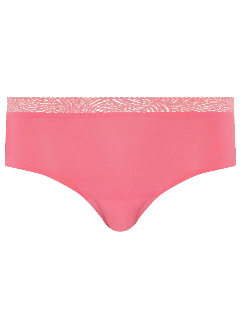 The Chantelle Soft Stretch One Size Hipster With Lace is simplistic and great for every day. The hipster style panty is made of smooth fabric which stretches to fit your body. This panty has lace details above the waistband for a touch of style and fun. The thin elastic waistband falls around the waist for a flattering mid-rise fit. High-cut legs provide mobility and freedom of movement while a full-coverage rear provides comfort and modesty. This hipster is one size fits all, and molds to fit your curves.