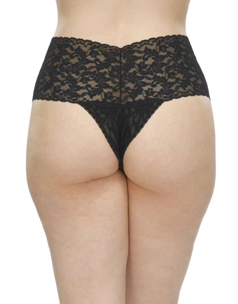 From the makers of The World’s Most Comfortable Thong, the Hanky Panky Signature Lace Retro Plus Size Thong has all the sexy, lacy makings of the original Hanky Panky thong, loved by women everywhere, but with an extra-wide waistband to tame your tummy a bit. It’s a thong dream come true! The stretch lace fabric glides across your curves to form a perfect snug fit that lies flat and smooth. If you love the sexy, lean fit of a thong, you’ll go nuts for the extra figure-flattering benefits this Hanky Panky retro thong offers.