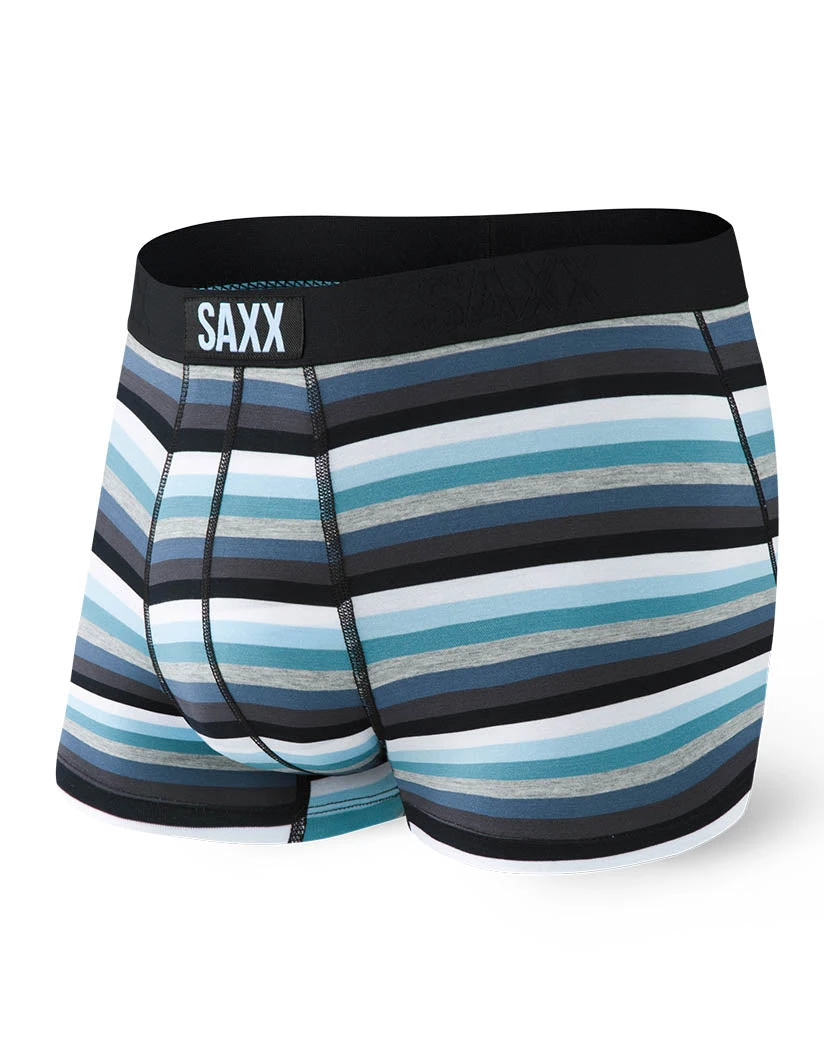 The Vibe Trunk in Miami Heather Stripe from SAXX is a super soft and well-fitting style, and falls at the natural waistline for a mid-rise fit. It features the SAXX patented contour pouch design, which has mesh panels around the sides to prevent chafing. It will keep you feeling supported and lifted, as well as cool and ventilated. The smooth, seamless seat and flyless front allows this trunk to lay flush against your body. The elastic waistband is exposed, with the brand logo on the front center. A tagless interior prevents any unwanted discomfort and irritation. The Vibe Trunk from SAXX will maintain its quality through many washes and wears, and will be the most comfortable underwear you’ve ever owned!